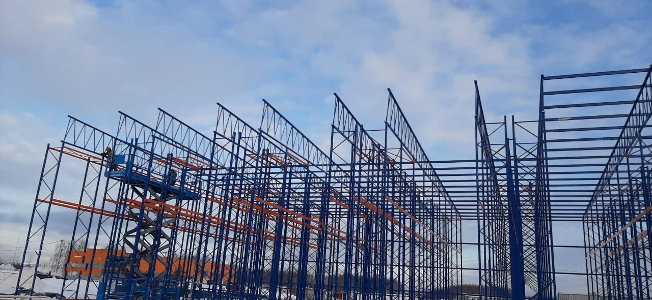 - Сборка каркаса самонесущего склада